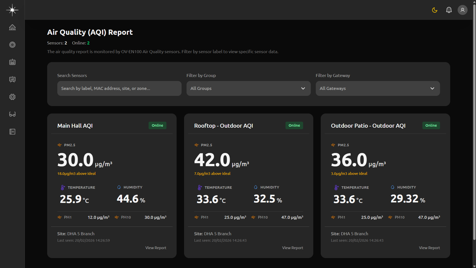 • Temperature & humidity monitoring