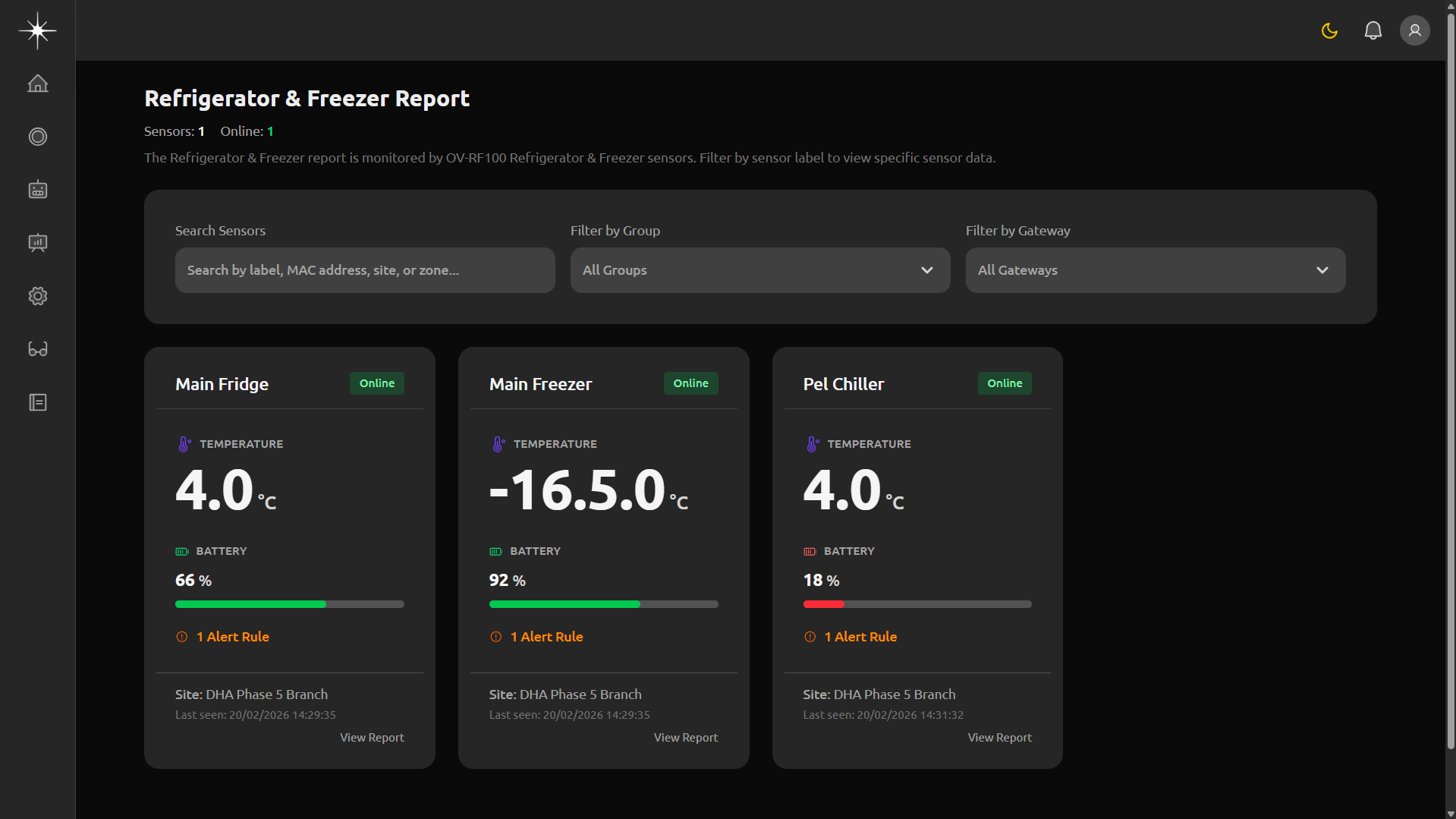 • Refrigerator & freezer tracking