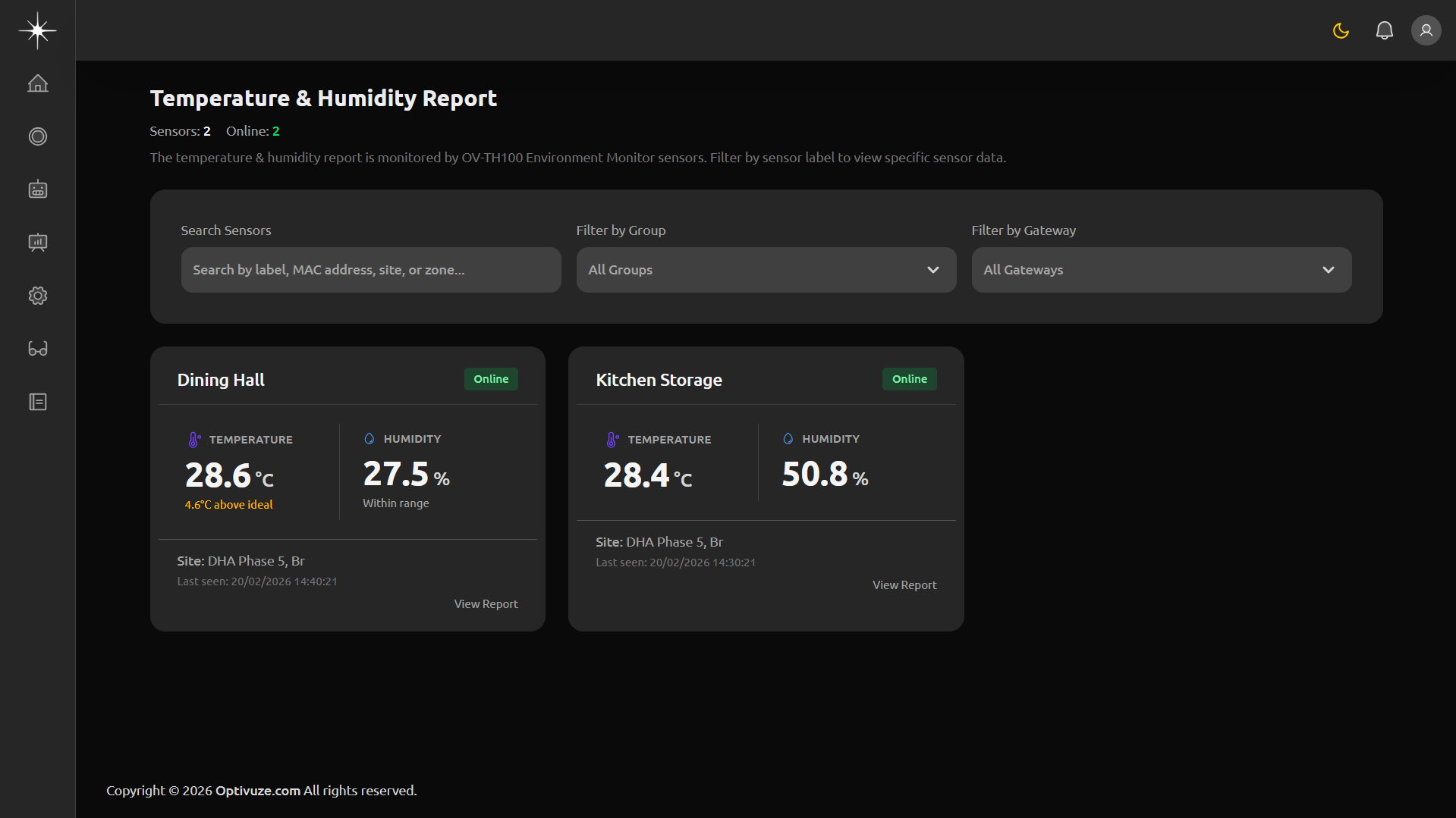 Real-time environmental monitoring with IoT sensors tracking temperature, humidity, air quality, and critical storage conditions.